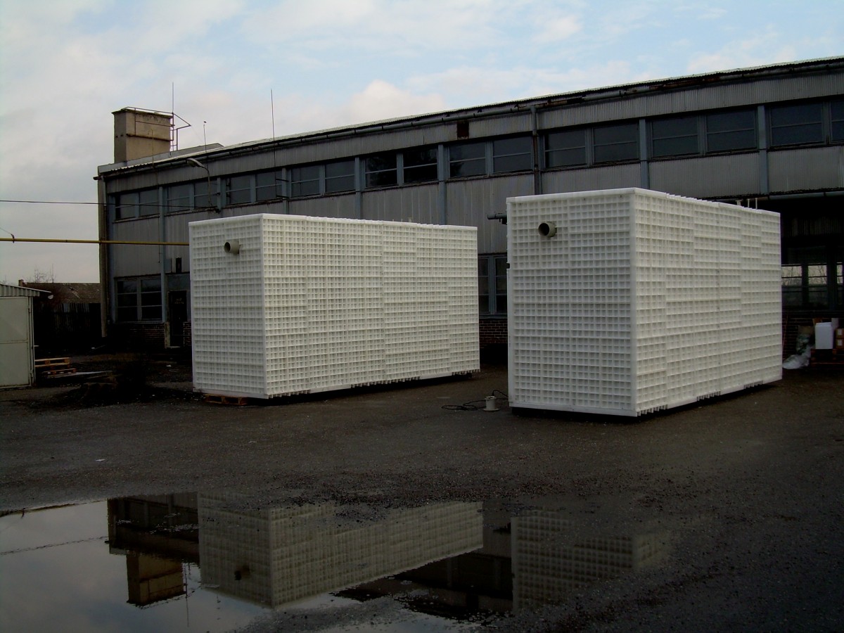 - Samonosná konstrukce ( pouze k obsypání – pevnost podložena statickým výpočtem, ČOV pouze z HOMOGENNÍCH PP DESEK)
